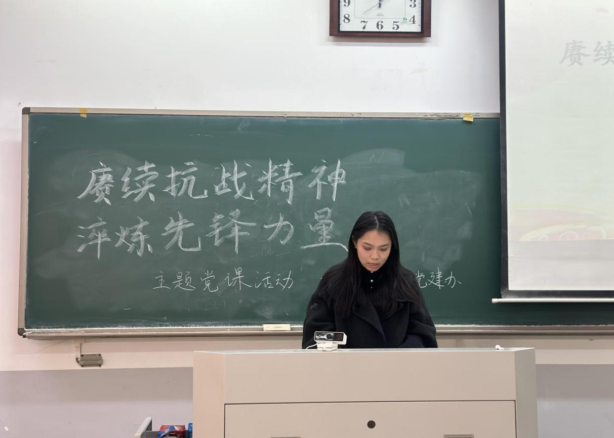 学生党支部于11月4日中午在龙子湖校区繁塔楼E107开展了以“赓续抗战精神,淬炼先锋力量”为主题的党课活动。