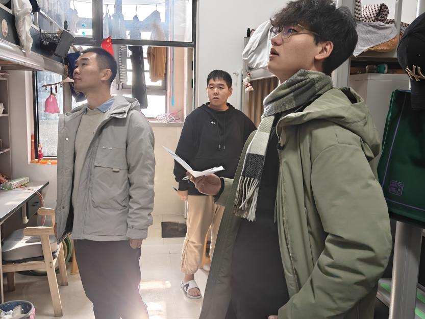 本次排查以消防和用电安全为核心,重点检查宿舍内是否存在违规使用大功率电器、私拉乱接电线、插排超负荷使用等危险行为,同时对宿舍内消防通道是否畅通进行细致核查。检查过程中,郑亚豪对发现的安全隐患耐心提醒,引导相关宿舍立即整改;针对部分宿舍杂物堆积可能影响消防通道畅通的情况,温馨叮嘱学生们及时整理内务,保持宿舍环境整洁,为安全防护筑牢基础。