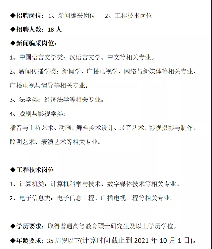 4、取得普通高等教育硕士研究生及以上学历学位,年龄在35周岁以下(计算时间截止到2021年10月1日);