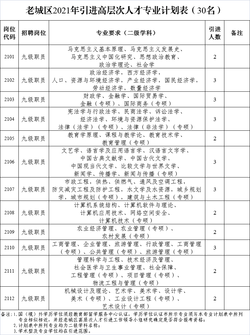老城区2021年计划引进高层次人才30名,详情见《老城区2021年引进高层次人才专业计划表》(附件1)