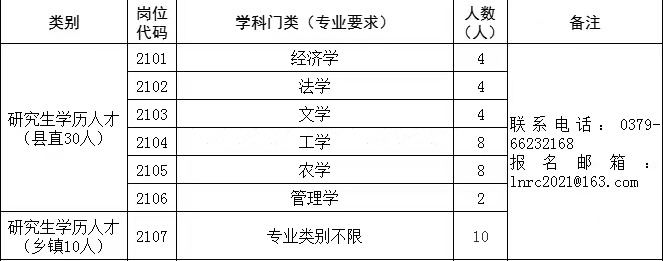 各岗位具体招录计划详见《洛宁县2021年人才引进计划表》(附件1)。
