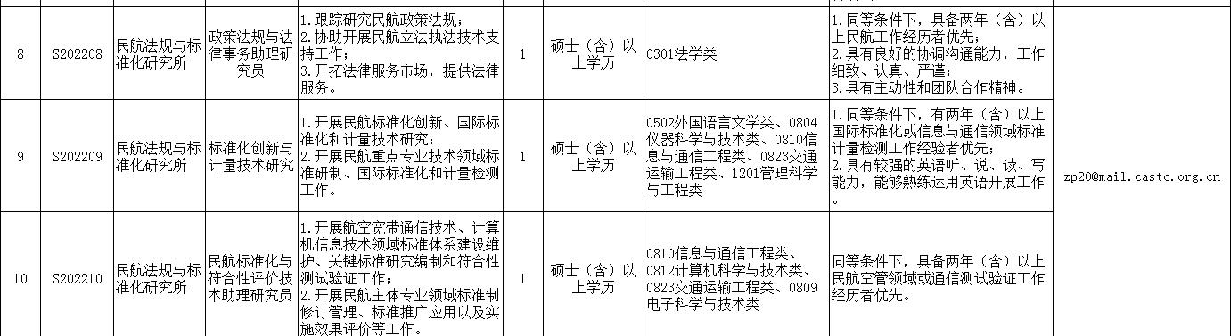 本次招聘面向符合条件的人员,具体岗位、数量及要求见《航科院2022年度面向社会公开招聘事业编制工作人员计划表(第二期)》(附件1)。